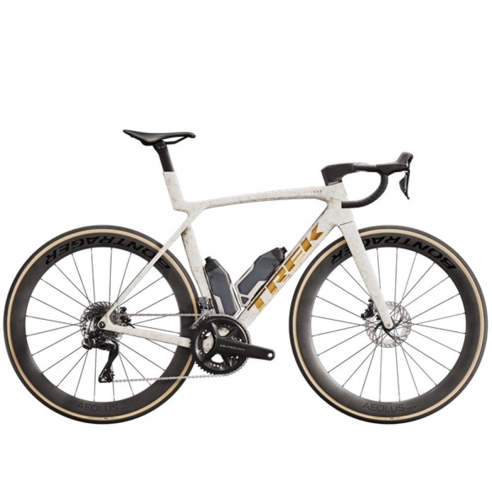 Madone SLR 7 Gen 8 is an ultra-aero and featherlight road bike that's built to race. Its 900 Series OCLV Carbon frame is not only aerodynamic, but also ultra-light for flying up climbs. Lightweight IsoFlow frame technology means that Madone doesn't sacrifice comfort for speed. To give you every aero advantage, Madone SLR comes with RSL Aero Bottles and Cages that further reduce drag. This build comes ready to win with a Shimano Ultegra Di2 groupset, carbon wheels, and a Trek Aero RSL one-piece carbon bar/stem.