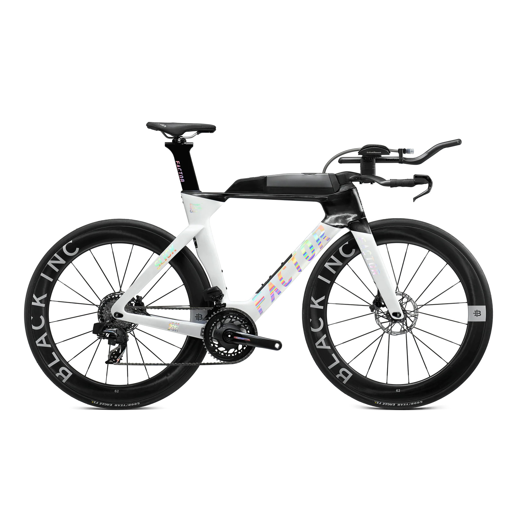 - Factor Mono-Riser Aerobar System: An ultra-clean, highly adjustable cockpit that ensures the rider can maintain their most aerodynamic tuck without sacrificing power or stability.