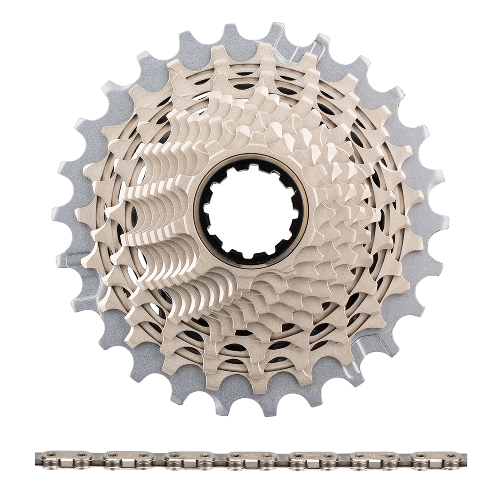 - Chain with inner and outer plates made of Hard Chrome™ for faster and more precise shifting